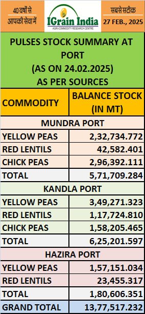 PULSES STOCK SUMMARY AT PORT
