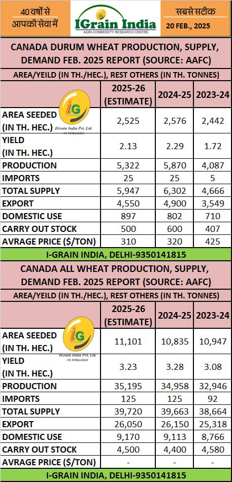 CANADA WHEAT P.S.D FEB. 2025 REPORT