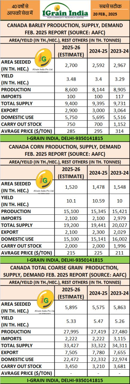 CANADA GRAINS P.S.D FEB. 2025 REPORT