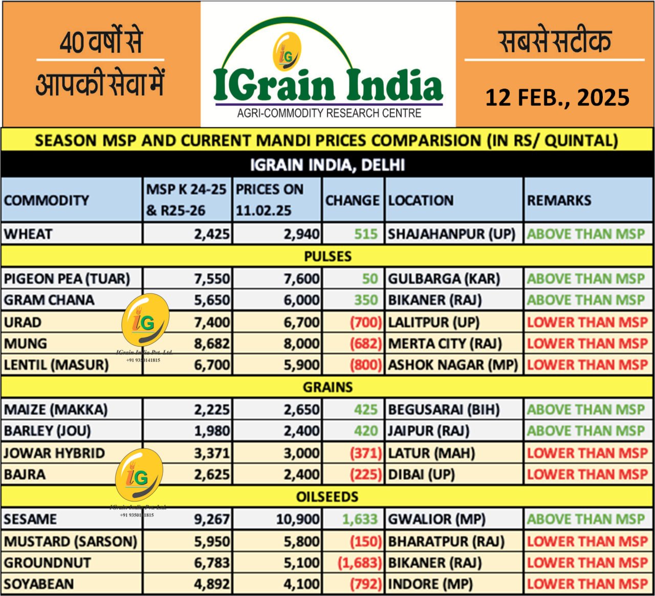 SEASON MSP AND CURRENT MANDI PRICES COMPARISON