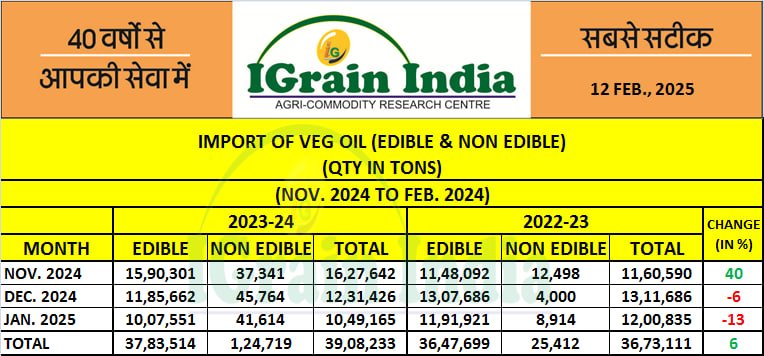 IMPORT OF VEG OIL (EDIBLE & NON EDIBLE)