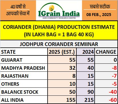CORIANDER (DHANIA) PRODUCTION ESTIMATE