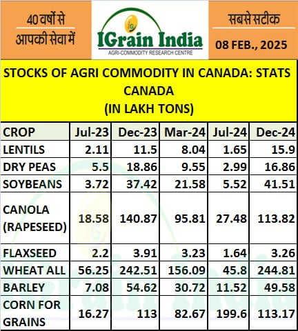 STOCKS OF AGRI COMMODITY IN CANADA STATS CANADA