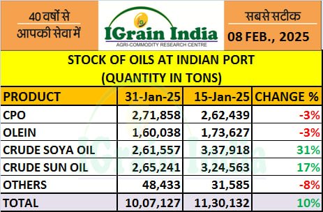 STOCK OF OILS AT INDIAN PORT 31.01.25