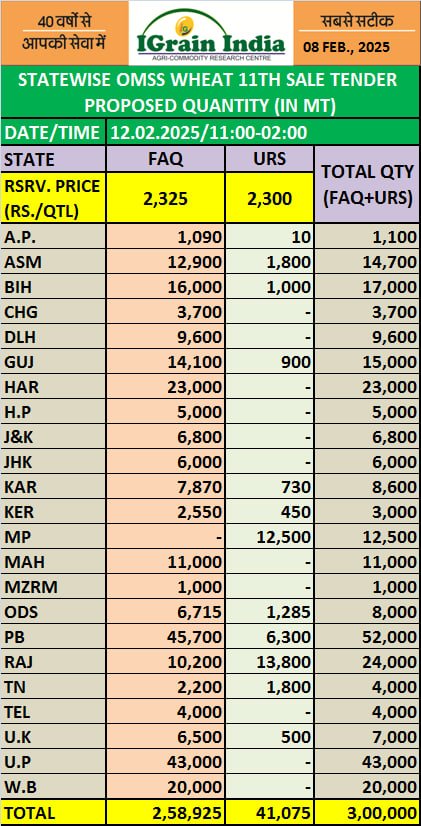 STATEWISE OMSS WHEAT 11TH SALE TENDER