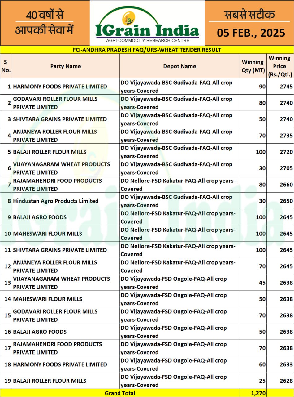 ANDHRA PRADESH FCI OMSS WHEAT TENDER RESULT 05-02-2025
