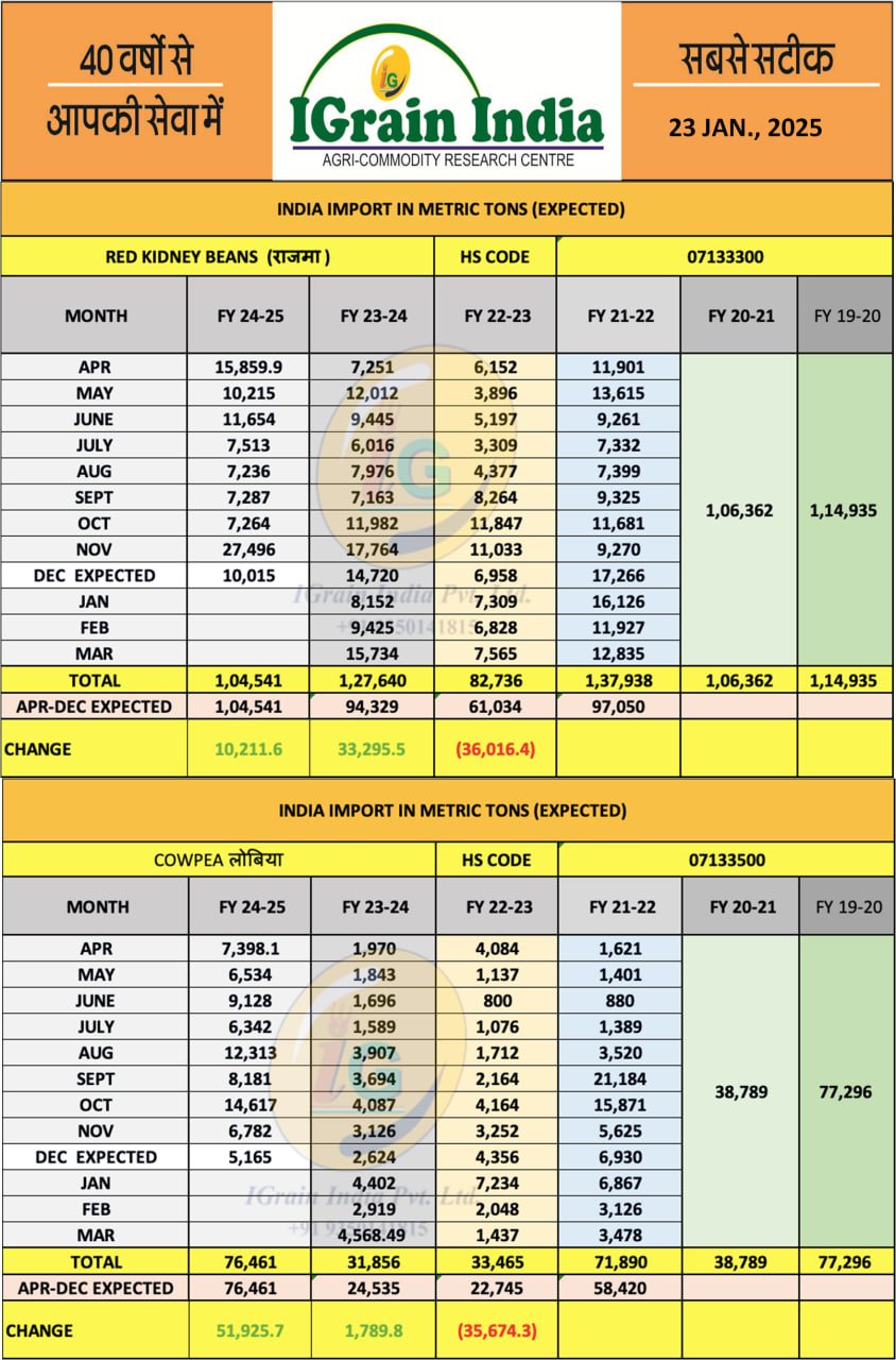 RAJMA LOBIA IMPORT FIGURES