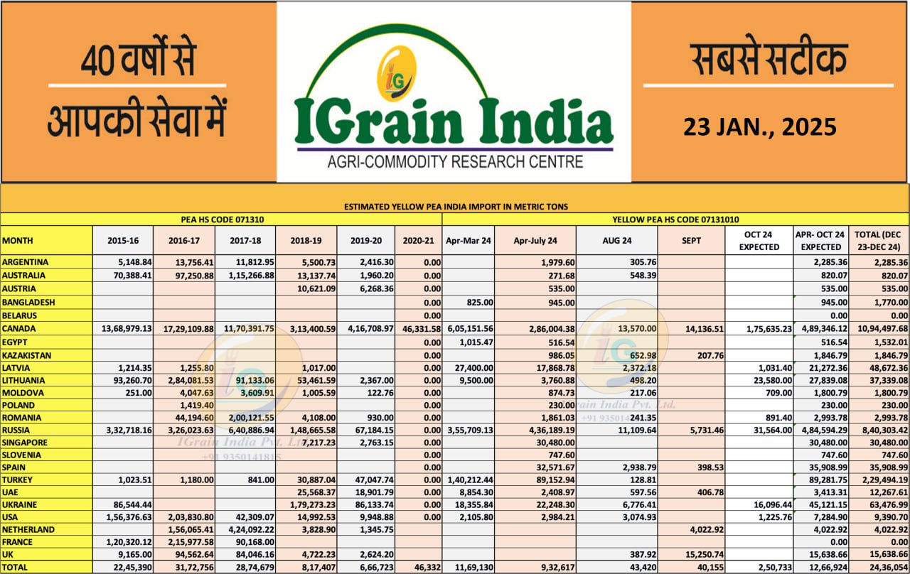 YELLOW PEA IMPORT FIGURES