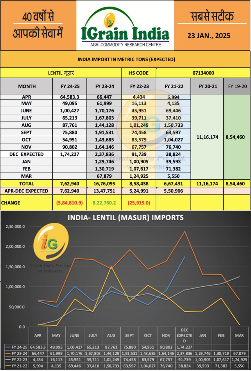 Australia's export of gram and lentils improves