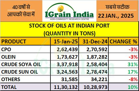 STOCK OF OILS AT INDIAN PORT 15.01.25