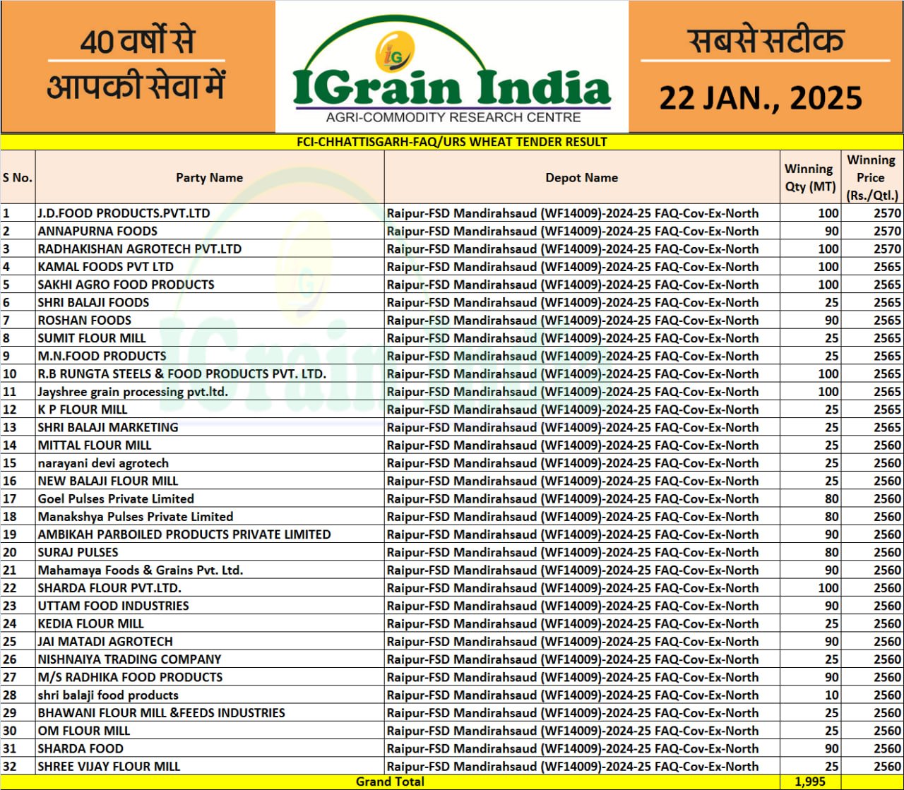 CHHATTISGARH FCI WHEAT TENDER RESULT 22-01-2025