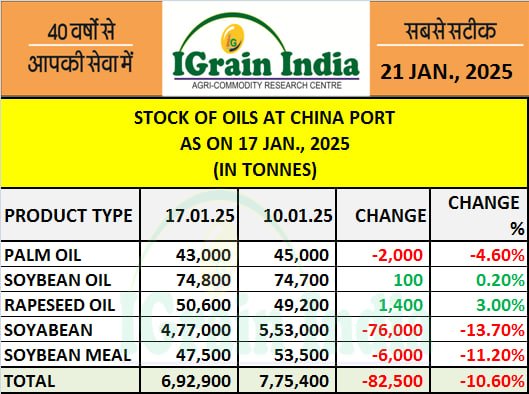 STOCK OF OILS AT CHINA PORT 17.01