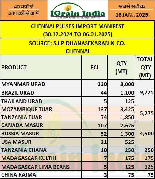 CHENNAI PULSES IMPORT MANIFEST 16.01