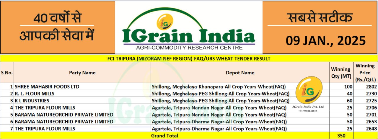 MIZORAM FCI WHEAT TENDER RESULT 08-01-2025