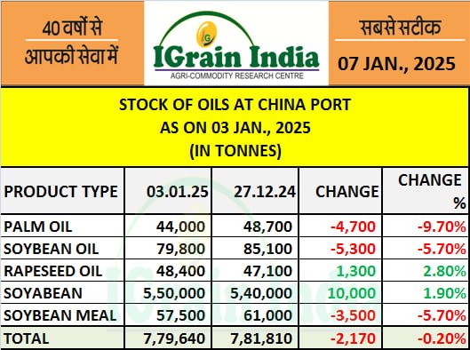 STOCK OF OILS AT CHINA PORT 03.01.25