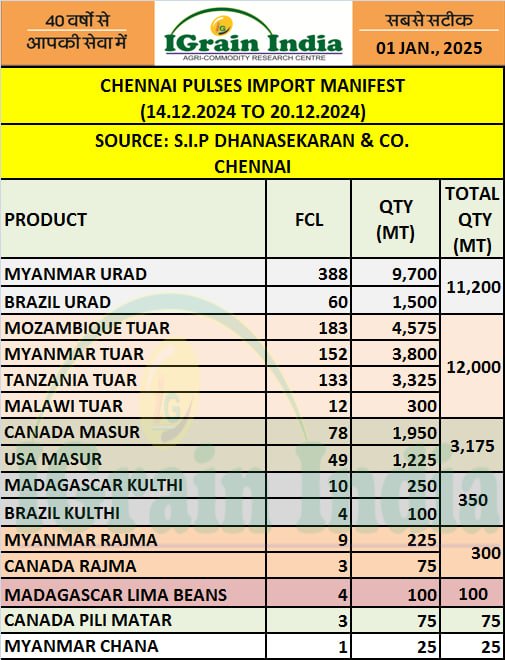 CHENNAI PULSES MENIFEST 01.01.25