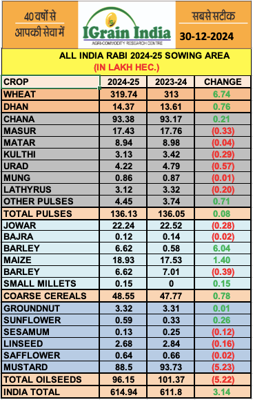 RABI SOWING AS ON 30 DECEMBER 2024