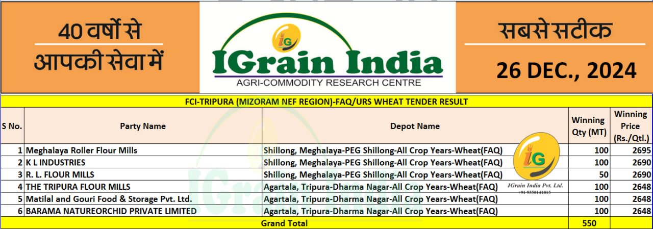 MIZORAM FCI WHEAT TENDER RESULT 26-12-2024