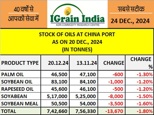 STOCK OF OILS AT CHINA PORT 20.12