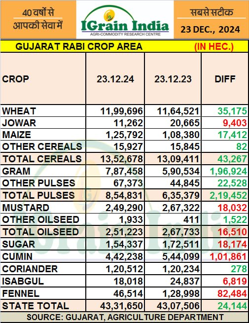 GUJARAT RABI SOWING AREA AS ON 23.12.2024