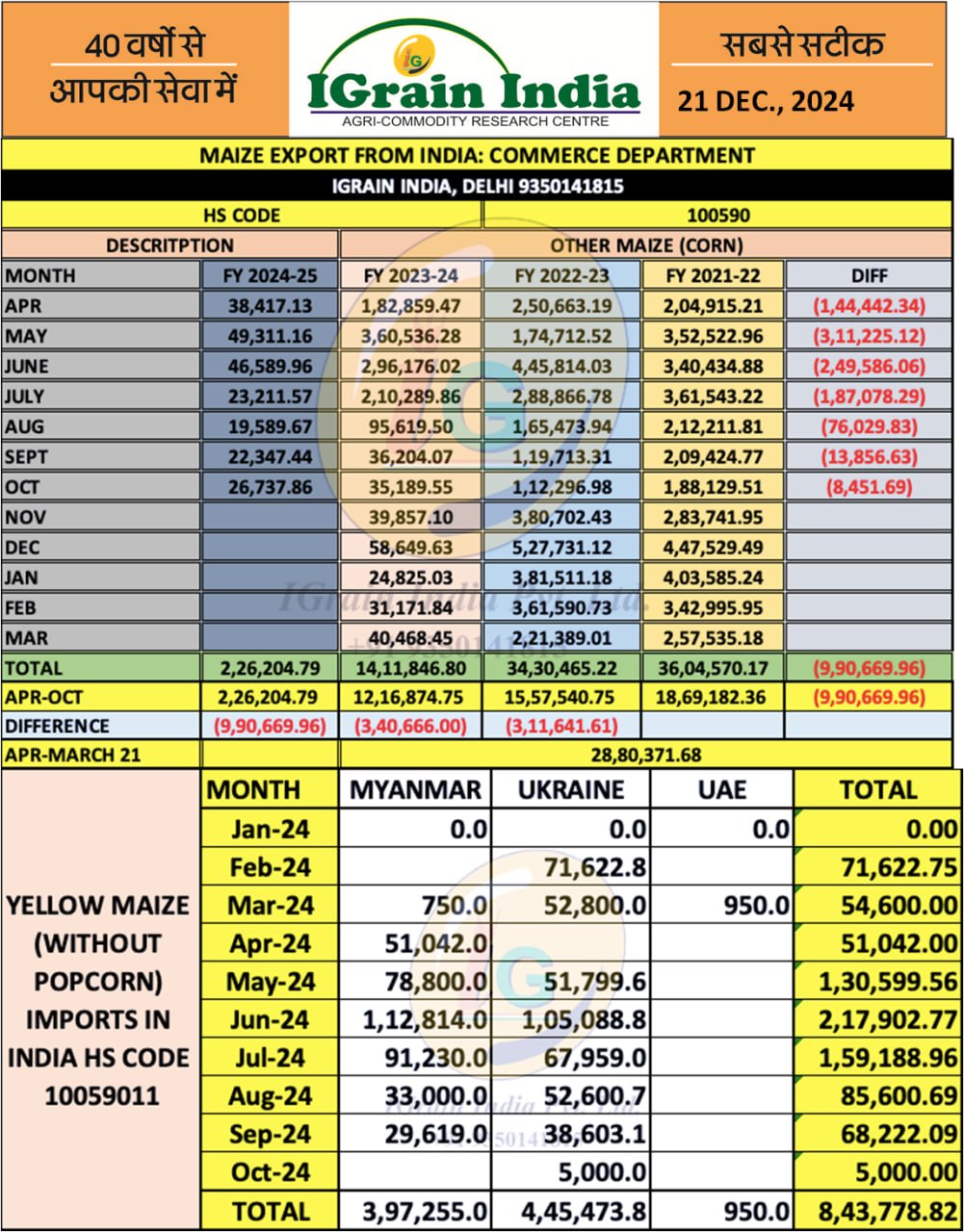 INDIA MAIZE EXPORT AND YELLOW MAIZE IMPORT