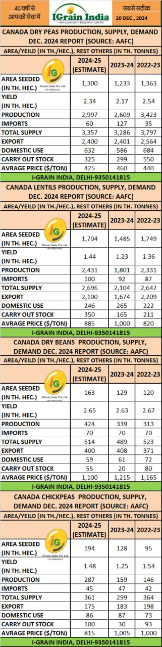 CANADA PULSES DEC. 2024 REPORT BY AAFC