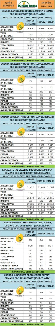 CANADA OILSEED DEC. 2024 REPORT AAFC