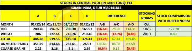 STOCKS IN CENTRAL POOL (IN LAKH TONS): FCI