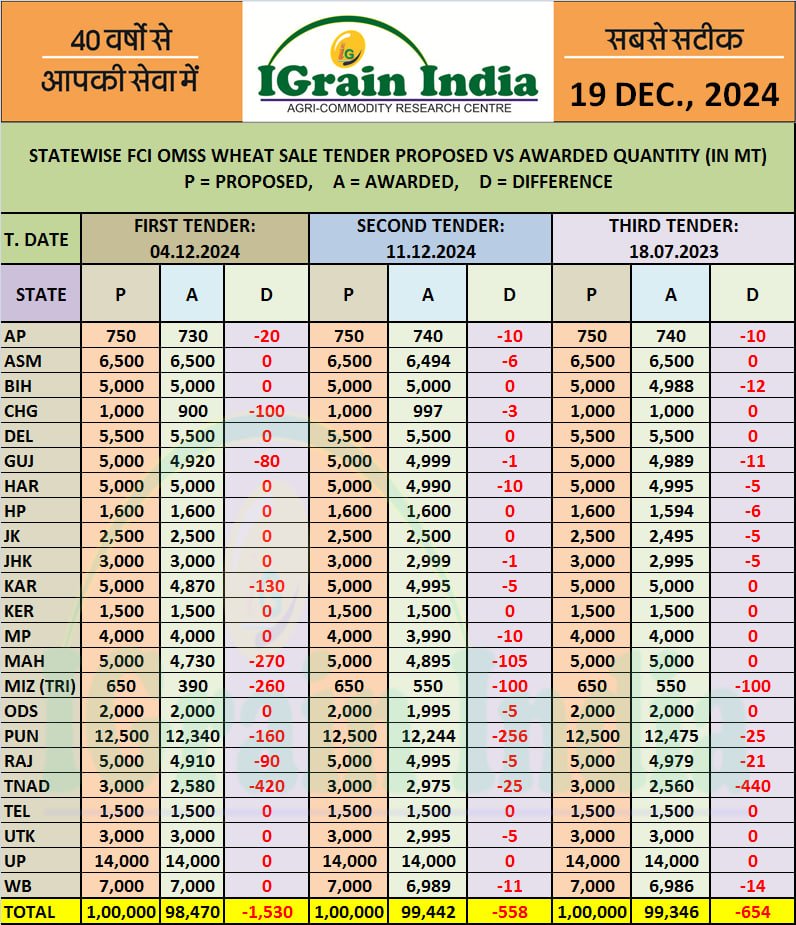 STATEWISE FCI OMSS WHEAT SALE PROPOSED VS AWARDED QUANTITY