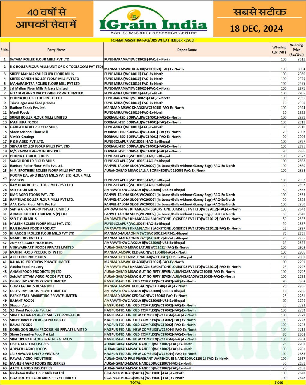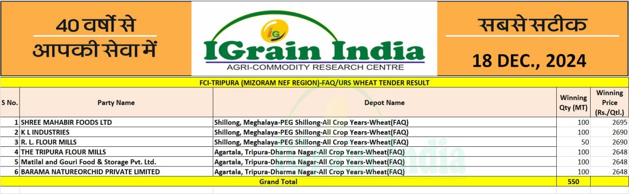 DELHI FCI TENDER RESULT 18 DEC 2024