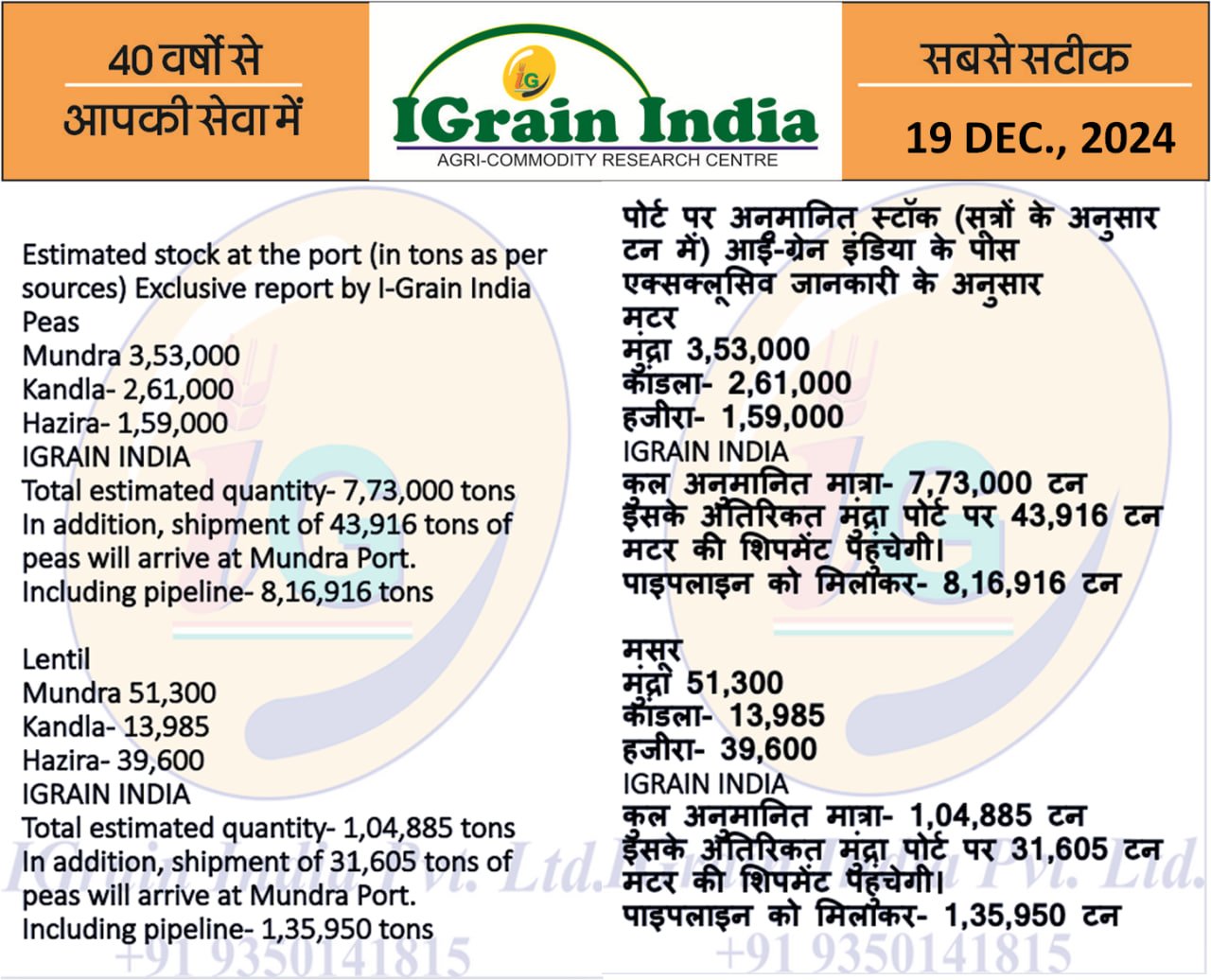 ESTIMATED STOCK AT PORT PEA AND LENTILS