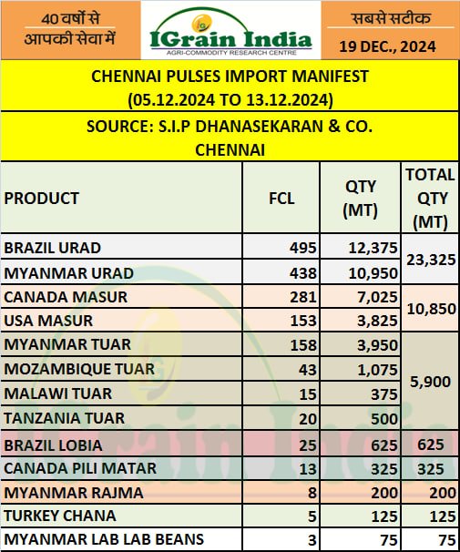 CHENNAI PULSES MENIFEST 05-13 DEC