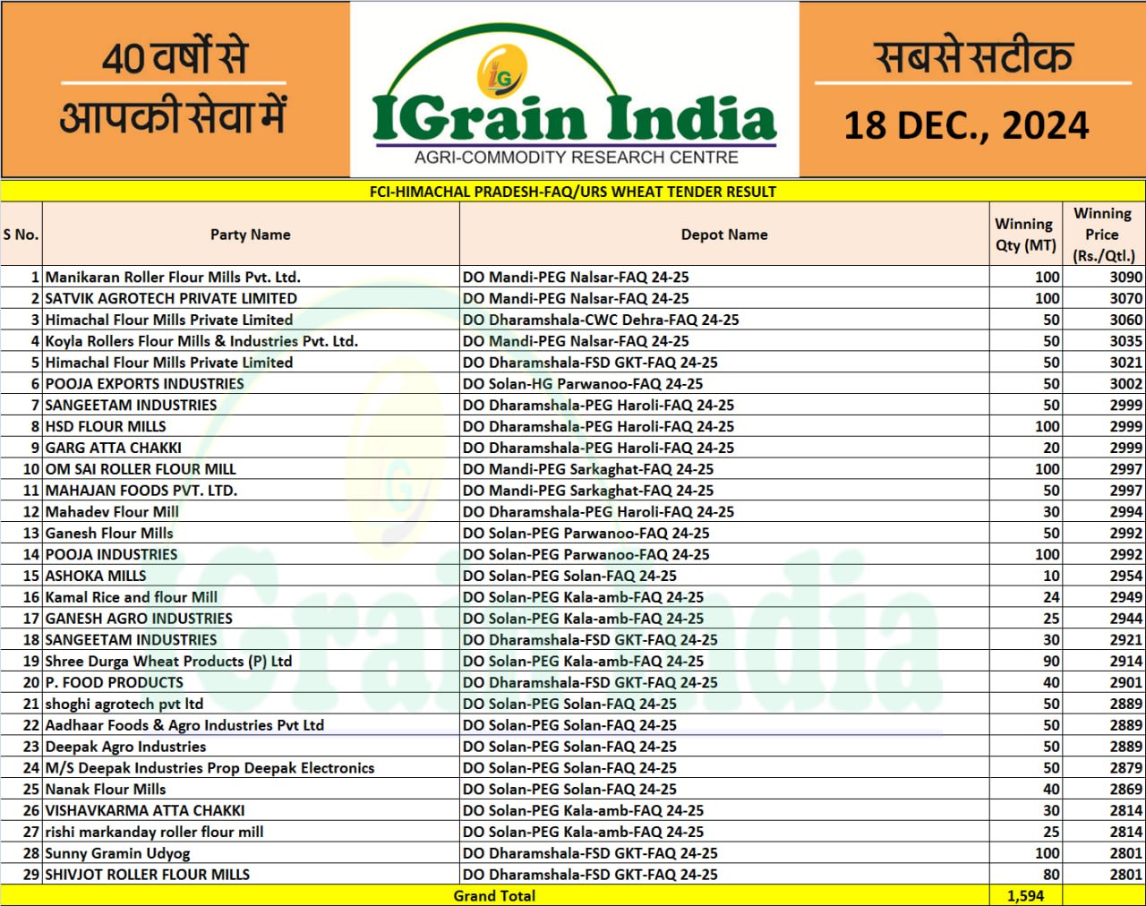 HIMACHAL PRADESH FCI WHEAT RESULT