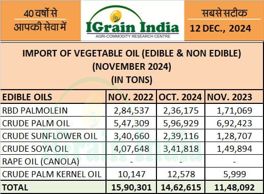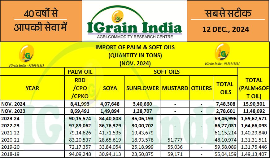 IMPORT OF PALM AND SOFT OILS