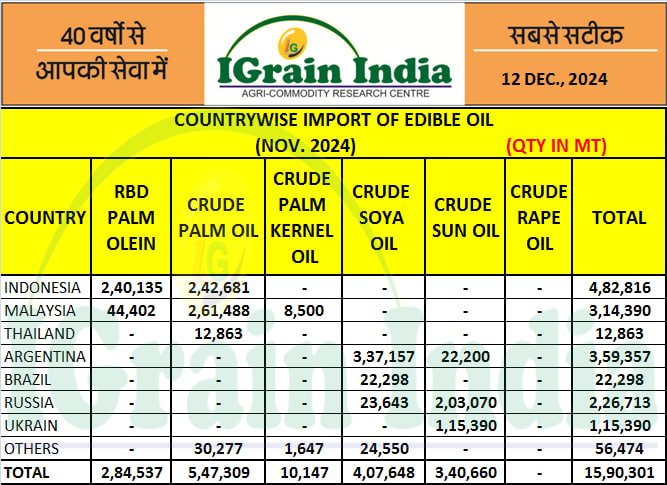 COUNTRYWISE IMPORT OF EDIBLE OILS