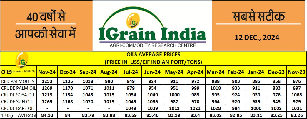 OILS AVERAGE PRICES