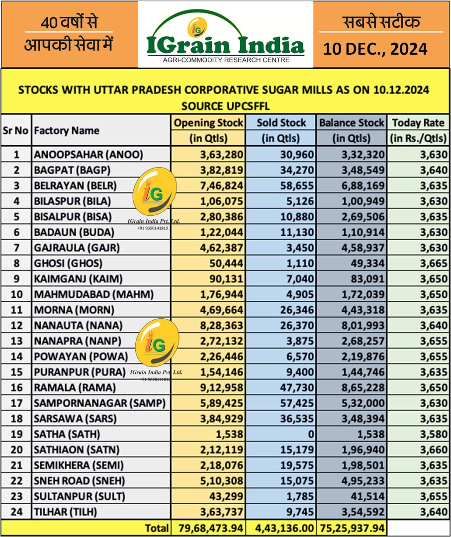 STOCKS WITH U.P. CORPORATIVE SUGAR MILLS