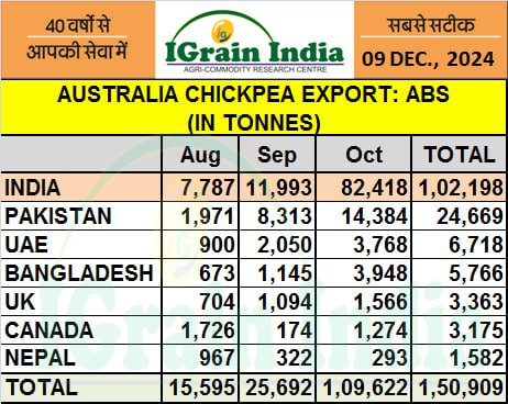 AUSTRALIA CHICKPEA EXPORT FIGURES: ABS