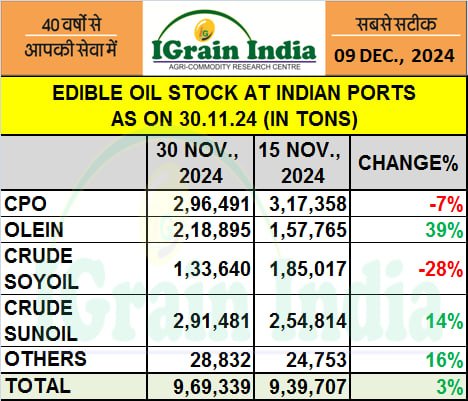 EDIBLE OIL STOCK AT INDIAN PORTS