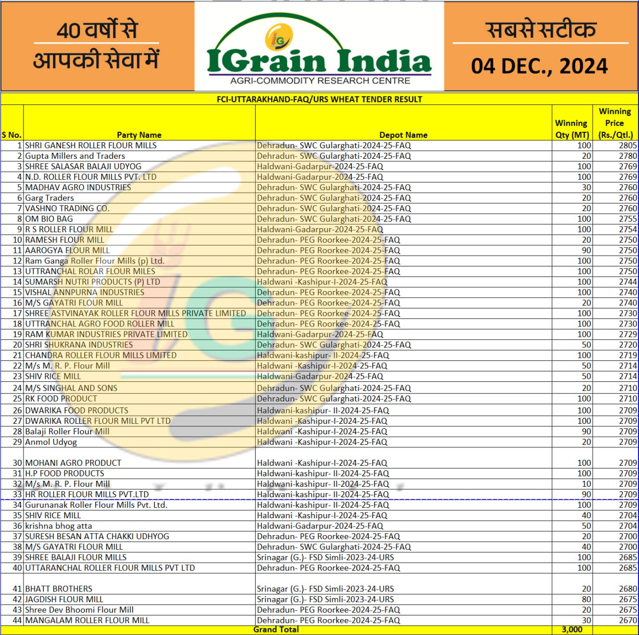 UTTARAKHAND FCI WHEAT RESULT