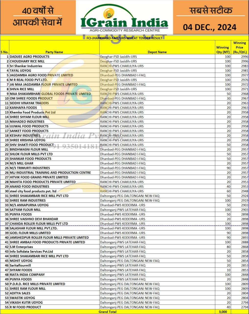 JHARKHAND FCI WHEAT RESULT