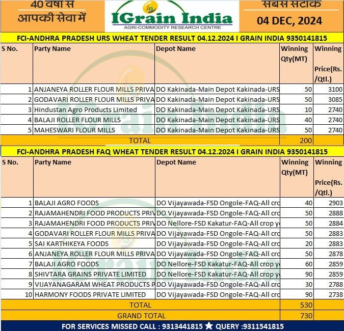 ANDHRA PRADESH FCI WHEAT RESULT