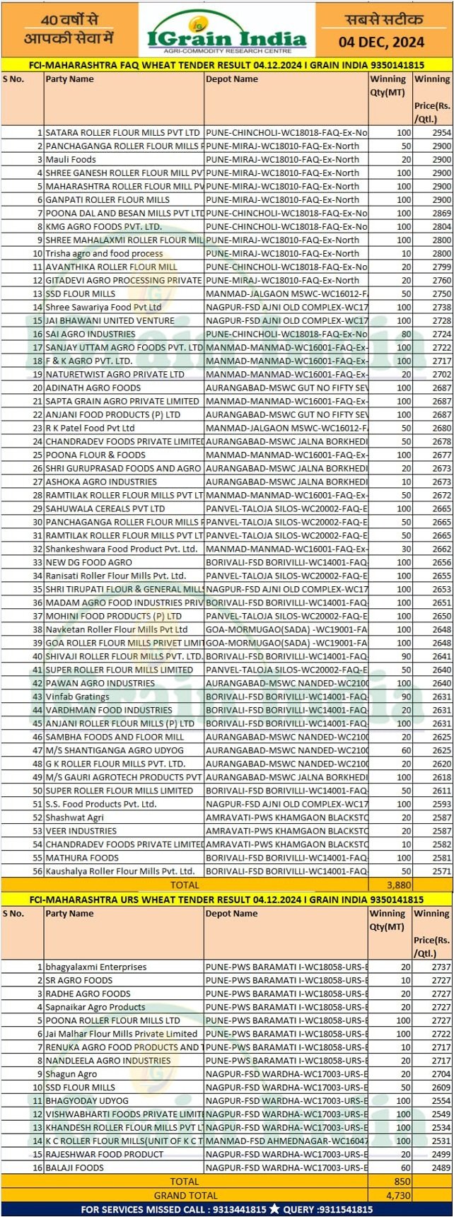 MAHARASHTRA FCI WHEAT RESULT