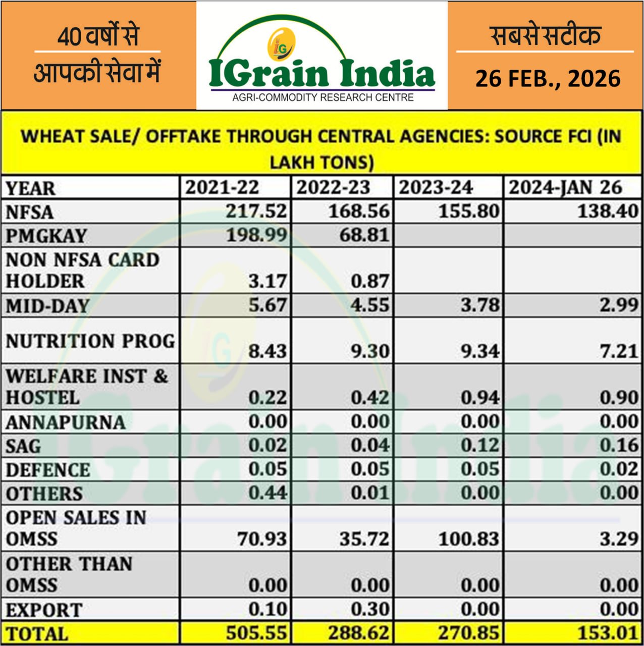 WHEAT SALE/OFFTAKE THROUGH CENTRAL AGENCIES