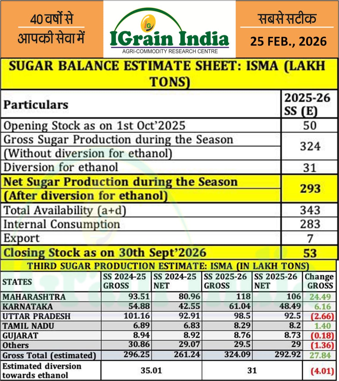 ESTIMATED SUGAR BALANCE SHEET AND PRODUCTION