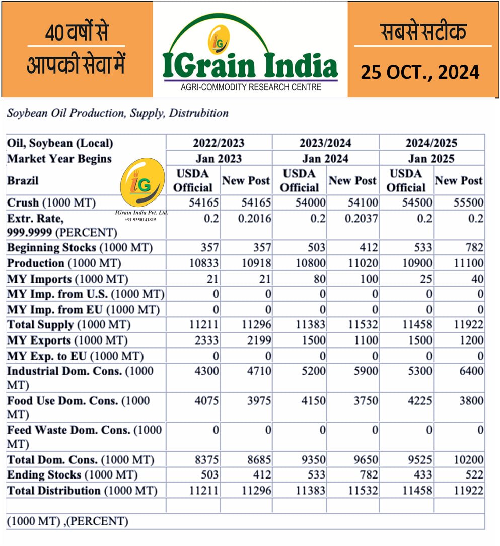 SOYOIL PRODUCTION SUPPLY DEMAND FIGURES: USDA