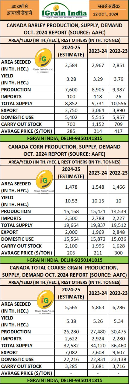 CANADA GRAIN PRODUCTION SUPPLY EXPORT DATA BY AAFC