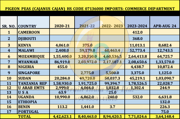 PIGEON PEA (TUAR) IMPORTS