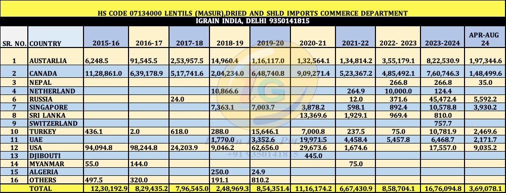 LENTIL (MASUR) IMPORT