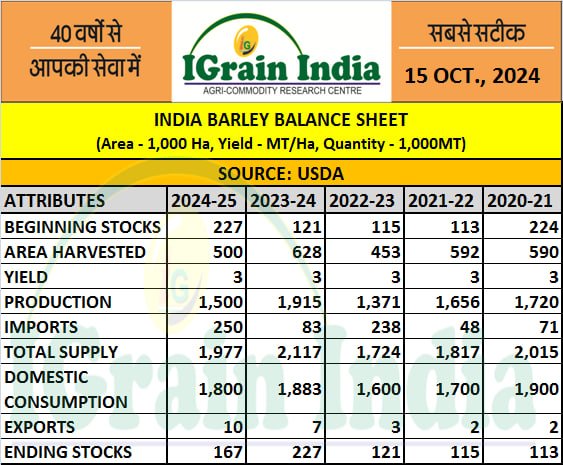 BARLEY BALANCE SHEET OF INDIA